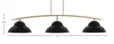The Kurve 3-Light Bar combines striking industrial design with contemporary finishes. Its unique double bubble metal shades in matte black contrast beautifully with the New Age Brass body, creating visual interest over islands and dining tables.