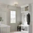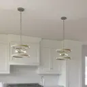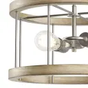 The Barrett Pendant blends distressed wood with brushed nickel accents for farmhouse appeal. Its 14-inch diameter and convertible mounting make it perfect for smaller spaces needing character without overwhelming the room.