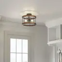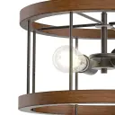 The Barrett Pendant combines warm auburn-stained wood with industrial anvil iron accents, creating a farmhouse-inspired fixture perfect for intimate spaces. Its convertible design and damp rating offer flexibility.
