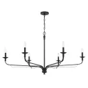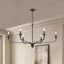 The Velena 47.25" chandelier makes a bold statement with its substantial linear design and dark matte black finish. Six candelabra bulbs provide ample illumination for large dining tables or kitchen islands.
