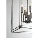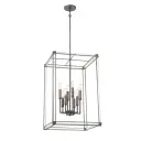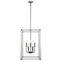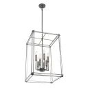 The Langen Square pendant combines contemporary geometric design with warm antique nickel finish. Eight candelabra bulbs provide ample illumination through clear acrylic panels, creating a sophisticated focal point for intimate dining spaces.
