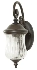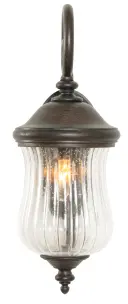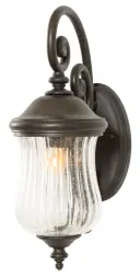 The Bellagio wall lantern combines traditional styling with modern durability through its MarbleX composite material. Clear seeded glass creates ambient lighting while the Black Coral finish resists outdoor elements.