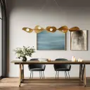 Large kitchen islands, spacious dining rooms, and contemporary homes seeking statement lighting with warm metallic accents