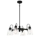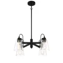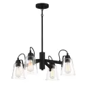 The Beckonridge 4-Light Chandelier combines transitional elegance with industrial character. Its 24-inch square frame in coal black finish and clear glass shades create a bold yet refined statement perfect for dining spaces and kitchen islands.