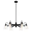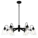 The Beckonridge 6-Light Chandelier combines transitional elegance with industrial character through its coal black finish and clear glass shades. Its 32-inch width makes it perfectly sized for medium dining rooms and kitchen islands.