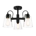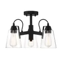 The Beckonridge semi-flush mount combines transitional elegance with industrial character. Its coal black finish and clear glass shades create a sophisticated look perfect for lower ceilings and compact spaces.