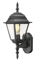 4001BK Matte Black Cast Aluminum 1-100W Medium 16″ H x 6″ W x 6.5″ ext. 5.75″ x 4.25″ 12″ Clear beveled glass pane...