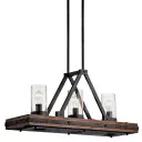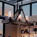 The Colerne Linear Chandelier combines warm auburn-stained wood with clear seeded glass shades for authentic farmhouse charm. Its 36-inch linear design makes it perfect for dining tables and kitchen islands.