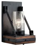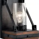 The Colerne Wall Sconce combines warm auburn-stained wood with clear seeded glass for authentic rustic appeal. Its compact 14.75" height makes it ideal for hallways, bathrooms, and accent lighting throughout the home.