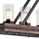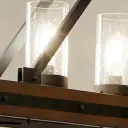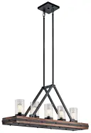 The Colerne Linear Chandelier combines warm auburn-stained wood with clear seeded glass shades for authentic farmhouse charm. Its 46.5-inch linear profile makes it perfect for dining tables and kitchen islands, delivering both style and function.
