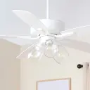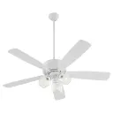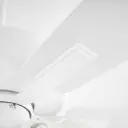 The Ovation ceiling fan combines functional cooling with understated style. Its slightly curved blades and modest housing in Studio White finish create a clean, versatile look that complements modern and transitional interiors.