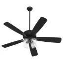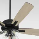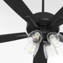 The Ovation ceiling fan combines functional cooling with stylish illumination through its 4-light design and clear seeded glass shades. Slightly curved blades and matte black finish create a transitional aesthetic that works in various settings.