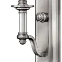 Sussex offers traditional charm with an edge of modern luxury. The Brushed Nickel finish, white fabric hardback shade, clear glass columns and candles...