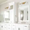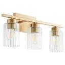 The Ladin 3-Light Vanity combines minimalist design with sophisticated aged brass detailing. Its bold, clean lines and cylindrical glass shades create a versatile fixture suitable for both residential and commercial spaces.