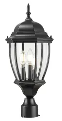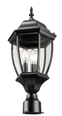 The Wexford 3-Light Post Mount combines traditional styling with durable cast aluminum construction. Clear beveled glass panes create beautiful light diffusion while the matte black finish adds contemporary appeal to classic design.