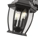 5032BK Matte Black Cast Aluminum 3-60W Candelabra 17.5″ H x 9.25″ W x 10.25″ ext. 7″ x 4.5″ 5.25″ Clear beveled gl...