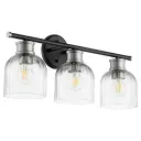 The Monarch vanity light offers exceptional versatility with its dual-finish design and clear fluted glass shades. The black and satin nickel combination provides visual interest while maintaining broad style compatibility.
