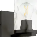 The Steinway wall sconce brings soft contemporary style with its matte black finish and clear hammered glass shade. Perfect for modern bathrooms, hallways, and bedrooms seeking refined illumination.