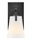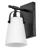 Clean and airy, Foster breathes composed simplicity into any bath space. Its softly tapered glass shade, suspended from arched handle prongs, creates ...