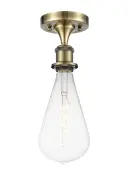 Bare Bulb - Antique Brass - Semi-Flush Mount