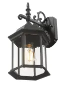 5184BK Matte Black Cast Aluminum 1-100W Medium 16.75″ H x 7.75″ W x 9.5″ ext. 7″ x 4.25″ 5″ Clear beveled glass pa...