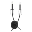 The Majesty 2-Light Wall Sconce combines traditional crystal elegance with contemporary matte black finish. Lavishly detailed arcs and crystal accents create sophisticated ambiance perfect for formal and casual spaces alike.
