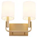 The Tempo 2-Light Wall Sconce combines classic candelabra styling with contemporary cylindrical linen shades, creating a versatile fixture that elevates any space. The aged brass finish adds warmth and sophistication.
