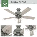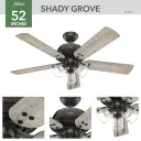 Add some contemporary style to your bedroom with the Shady Grove ceiling fan. The casual, transitional style features blades and a light kit in multip...