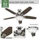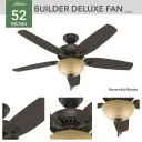 With a 52-inch blade span, the casual, traditional style of the Builder Deluxe LED ceiling fan will complement standard or large rooms in your home wi...