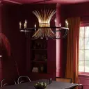 The Baile Chandelier makes a dramatic statement with its generous 37-inch diameter and striking black and natural brass finish combination. Perfect for large dining rooms and entryways, this 10-light fixture delivers both substantial illumination and sophisticated industrial-transitional style.