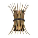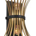 The Baile Wall Sconce combines matte black and natural brass finishes in a clean, architectural design. Its 2-light configuration and damp rating make it versatile for bathrooms and hallways alike.