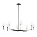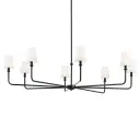 The Pallas Chandelier makes a dramatic impact with its impressive 52-inch diameter and eight fabric tapered shades. Perfect for large dining rooms or grand entryways, this fixture combines contemporary design with transitional appeal.