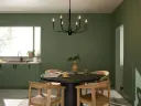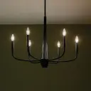 The Deela Chandelier brings contemporary elegance with its 28-inch diameter and clean black finish. Six dimmable lights provide excellent illumination for medium to large spaces, while the modern aesthetic complements various interior styles.