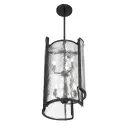 6 Light Pendant in Coal Black with Clear Rock-Pressed Glass