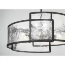 The Bella Collina 6-Light Pendant combines rugged industrial style with refined craftsmanship. Its Coal Black steel frame and distinctive rock-pressed glass shades create dramatic visual interest while providing ample illumination for dining and gathering spaces.