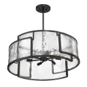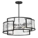 6 Light Pendant in Coal Black with Clear Rock-Pressed Glass