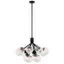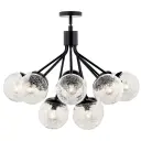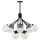 The Silvarious chandelier makes a bold statement with its 30-inch diameter and 12 crackle glass shades. Convertible design offers installation flexibility, while the dimmable feature allows mood customization. Available in four finishes.