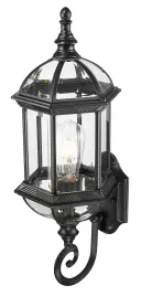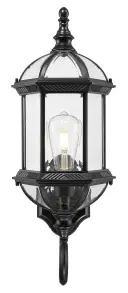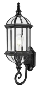 5272BK Matte Black Cast Aluminum 1-100W Medium 21.5″ H x 8″ W x 8″ ext. 7″ x 4.5″ 14″ Clear beveled glass panes Sp...
