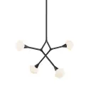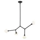 The Cassius Chandelier combines contemporary linear design with practical convertibility. Its 39.5-inch span and opal glass shades create sophisticated illumination perfect for modern dining spaces and kitchen islands.