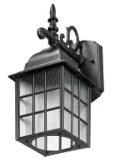 5302BK Matte Black Cast Aluminum 1-100W Medium 15″ H x 6″ W x 9″ ext. 7″ x 4.25″ 4.5″ Acid etched glass panes Spec...