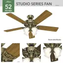 The most classic ceiling fan Hunter has to offer, the traditional design of the Studio Series ceiling fans with lights will keep your room fresh and r...