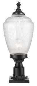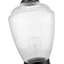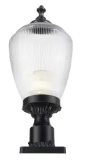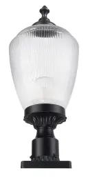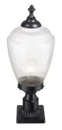 5367BK/CL Matte Black Cast Aluminum 1-60W Medium 20.25″ H x 9″ W NA NA Clear prismatic acrylic globe Spec sheet: https://images.junipercdn...