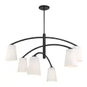 The Headington chandelier makes a bold statement with its 54-inch linear design and six fabric-shaded lights. The coal black finish paired with white linen shades creates sophisticated contrast perfect for contemporary spaces.