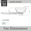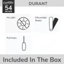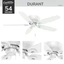 The Durant 54" ceiling fan combines traditional styling with modern Direct Drive™ motor technology, delivering powerful yet silent performance. Ideal for rooms with low ceilings up to 400 sq ft, featuring clean curved lines and a timeless design.