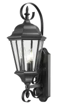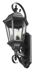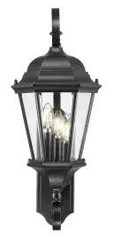 5413BK Matte Black Cast Aluminum 3-60W Candelabra 25″ H x 9.25″ W x 10.5″ ext. 5.25″ x 3″ 15.25″ Clear beveled gla...