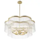 The Azura 6-Light Pendant combines warm heirloom brass with prismatic crystal rods for sophisticated sparkle. Its 28-inch linear profile makes it perfect for dining tables and kitchen islands, delivering both ambient and decorative lighting.