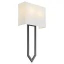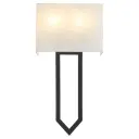 The Bolivar 2-Light Sconce features a unique arrow motif with overlapping angles that create visual interest. The matte black finish paired with white fabric shades delivers a sophisticated contrast perfect for transitional interiors.