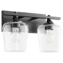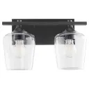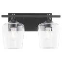 The Veno 2-Light Vanity combines traditional angular frames with clear glass shades in a sophisticated matte black finish. Perfect for bathrooms seeking timeless appeal with contemporary edge.