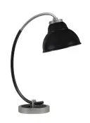 This desk lamp combines industrial style with modern functionality, featuring a unique double bubble metal shade and dual-tone graphite and matte black finish. Perfect for task lighting in home offices or bedrooms.