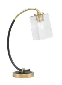 This contemporary desk lamp combines a sleek matte black base with new age brass accents and a unique 4-inch square bubble glass shade. The textured glass diffuses light beautifully while the dual-finish design adds visual interest to any workspace or bedroom.
